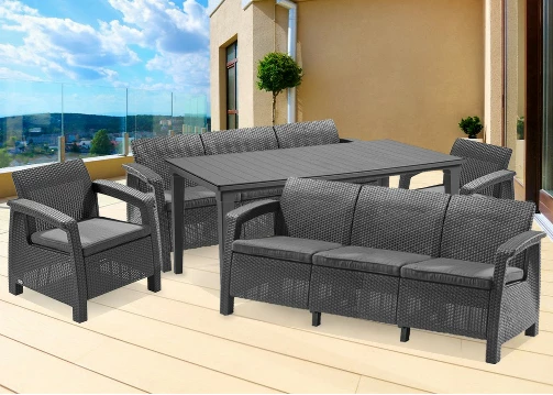 La prima vedere, poate părea că mobila este fabricată din ratan, dar de fapt este fabricată dintr-un plastic de înaltă calitate, care poate rezista la condiții meteorologice extreme. Pernele plate, cotierele late și spătarele conturate asigură confortul scaunelor și canapelelor. Producătorul de mobilă este marca Curver, care produce mobilier de grădină de înaltă calitate din plastic turnat prin injecție. Operează într-un grup cu mărcile bine-cunoscute și populare Keter și Allibert din Polonia.
