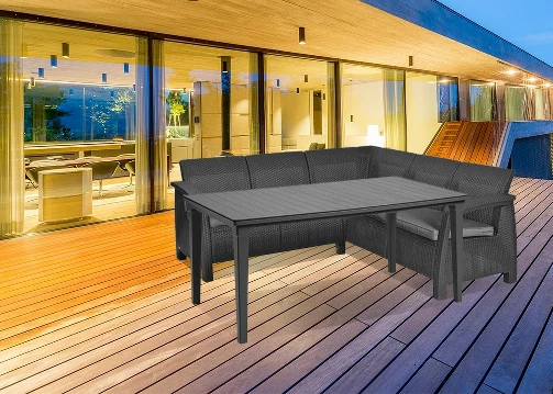 Corfu Relax nu își pierde culoarea. Nu necesită întreținere specială, o cârpă umedă este suficientă pentru a îndepărta murdăria. Setul de mobilier de grădină poate fi expus afară tot timpul anului; înghețul, ploaia și zăpada nu-i vor face rău.