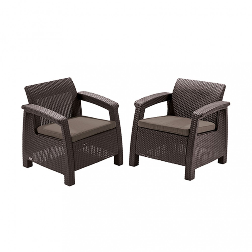Cel mai important avantaj al mobilei este confortul său. Canapeaua și fotoliile setului de mobilier de grădină Corfu Love Duo au spătare profilate, cotiere late și perne plate pentru șezut - datorită cărora ne putem bucura de confortul acestuia, indiferent dacă bem cafea, citim un ziar sau ne bronzăm. Pernele se potrivesc ideal dimensiunilor scaunelor și au o grosime de 6 cm. Mobilierul poate susține o greutate de 300 kg - 100 kg per loc. Caracteristica lor excepțională este polipropilena - un plastic extrem de durabil. Materialul este cunoscut pentru rezistența sa la efectele nocive ale temperaturilor ridicate, apei și radiațiilor UV. Acest lucru permite mobilei să își păstreze culoarea intensă și forma frumoasă, chiar și atunci când este afară tot timpul anului. Datorită durabilității materialului, putem admira frumusețea lor mulți ani. Pernele scaunului au fost impregnate corespunzător pentru a asigura o rezistență mai mare la apă. Deși ploaia abundentă le va uda ca pe orice altă pernă, puțină burniță sau o băutură vărsată nu le va strica în niciun fel.