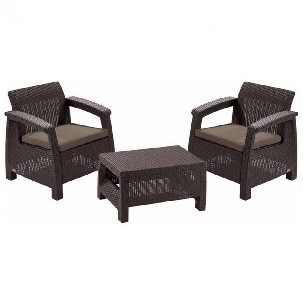 În timpul producției de mobilier Corfu, s-a acordat atenție armonizării designului și culorii în cadrul seriei. Aceasta înseamnă că setul de mobilier de grădină Corfu Weekend Curver poate fi folosit ca bază pentru crearea unui set potrivit. Puteți cumpăra încă două scaune (Corfu Duo), o canapea dublă (Corfu Love Seat) sau o canapea mai mare cu trei locuri (Corfu Love Seat Max) pentru a completa masa și scaunele. Dacă cumpărăm mobilă de aceeași culoare, putem fi siguri că va arăta identic atunci când va fi așezată una lângă alta.