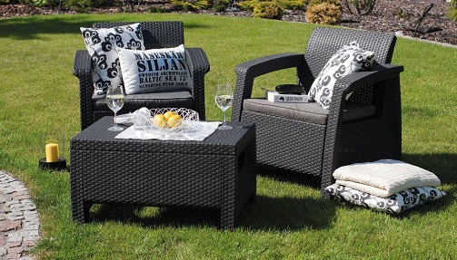 Setul Corfu Weekend Curver este o combinație de durabilitate, confort și eleganță. Fotoliile și masa sunt de culoare grafit, iar pernele șezuturilor sunt gri. Nuanțele de gri sunt foarte elegante și se îmbină bine cu diferitele culori ale mediului înconjurător. În 2016, denumirile culorilor s-au schimbat - antracitul a fost înlocuit cu grafit. E aceeași nuanță, doar numele a fost schimbat. Mobila are forma unor șnururi de ratan - imitația este atât de reușită încât putem observa designul său real abia după contactul direct cu mobila. Picioarele joase și estetice garantează o stabilitate adecvată, iar husele de pernă gata confecționate adaugă un plus de eleganță mobilierului de terasă. Spătarele înalte, cu forma corectă, pernele plate ajustate la dimensiunea scaunului și cotierele confortabile sporesc confortul scaunelor. Cu setul Corfu Weekend, vă puteți relaxa cu plăcere pe balcon.
