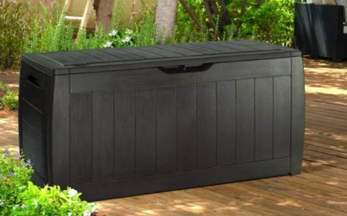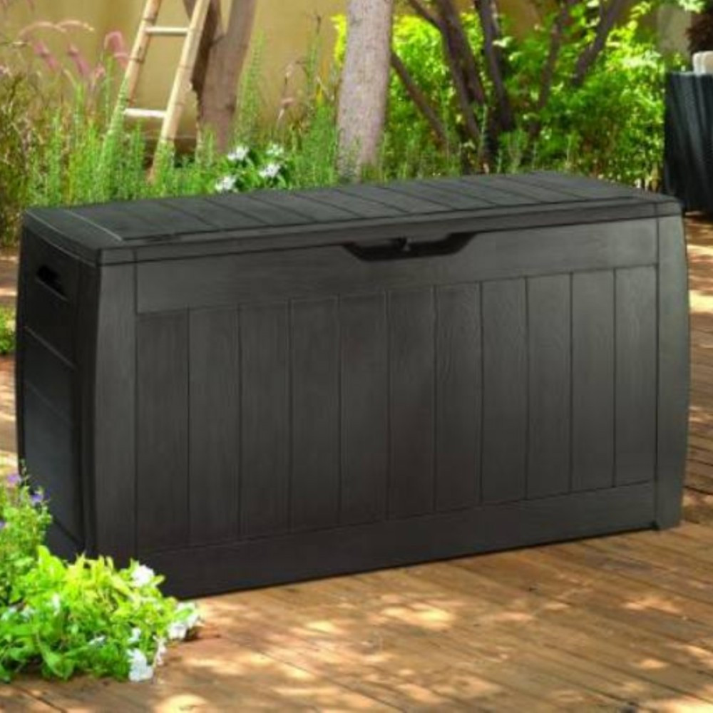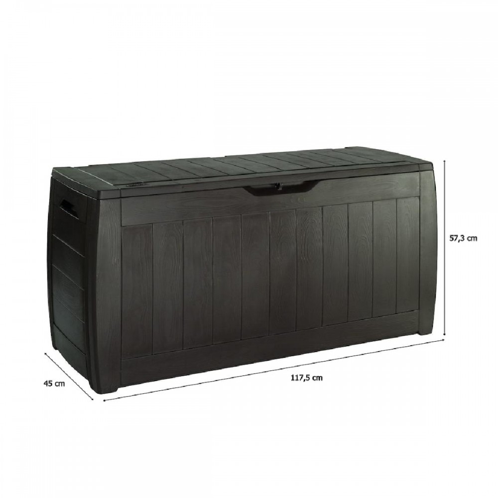 Lada de grădină funcțională și spațioasă, cu o capacitate de 270 de litri, a fost fabricată de renumita companie Keter, care are o vastă experiență în crearea de echipamente de grădină din plastic. O unitate de depozitare pentru grădină este locul perfect pentru a depozita perne pentru scaune de grădină, jucării sau alte echipamente de grădină. Deși arată ca o cutie de grădină din lemn, aceasta este doar o procedură stilistică implementată în timpul procesului de fabricație. Cutia Keter Hollywood este fabricată în întregime din plastic rezistent și durabil. Datorită acestui fapt, este impermeabil, rezistent la radiațiile UV și ecologic. Majoritatea materialelor folosite pentru fabricarea produselor Keter provin din reciclare.