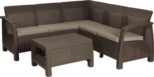 Colțul suficient de lung vă permite, de asemenea, să vă întindeți confortabil sau să vă relaxați într-o poziție reclinabilă - un loc minunat pentru a citi, a asculta muzică sau pur și simplu a vă relaxa la aer curat. Capacitatea de încărcare a unei bănci de colț este de aproximativ 100 kg, ceea ce înseamnă că întreaga piesă de mobilier poate susține aprox. Trebuie să poată susține 500 kg. Imită ratanul. Un astfel de material oferă o rezistență mai mare la condițiile meteorologice nefavorabile: ploaie, zăpadă, radiații UV. Mobila poate fi lăsată afară tot timpul anului, este ușoară și durabilă. Nu se decolorează și nu ruginesc, ne servesc mult timp. Întrucât fiecare element de mobilier este fabricat prin turnare prin injecție în fabrică, fiecare element este realizat în același mod ca celelalte. Prin imitarea perfectă a technoratanului din ratan în fiecare parte a mobilierului, eroarea umană ar trebui redusă la minimum. Nu există huse pentru mobilă, deoarece nu este necesar să le acoperiți. Totuși, dacă vrem să putem organiza singuri coperta - acest lucru va avea cu siguranță un efect pozitiv asupra comportamentului setului.