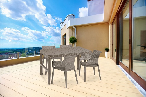 Setul de mobilier de grădină Evyob 4 în 1 este fabricat din plastic rezistent. Masa de grădină ridicată Lyon este o alegere excelentă la un preț atractiv. Este fabricat din polipropilenă, care imită technoratanul ca aspect vizual. Polipropilena este un material rezistent la condiții meteorologice nefavorabile, radiații UV, diferențe de temperatură sau deteriorări mecanice, fiind potrivită pentru utilizare în exterior.