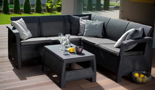 Setul de colț de grădină Allibert Corfu relax din ratan artificial este disponibil în mai multe culori