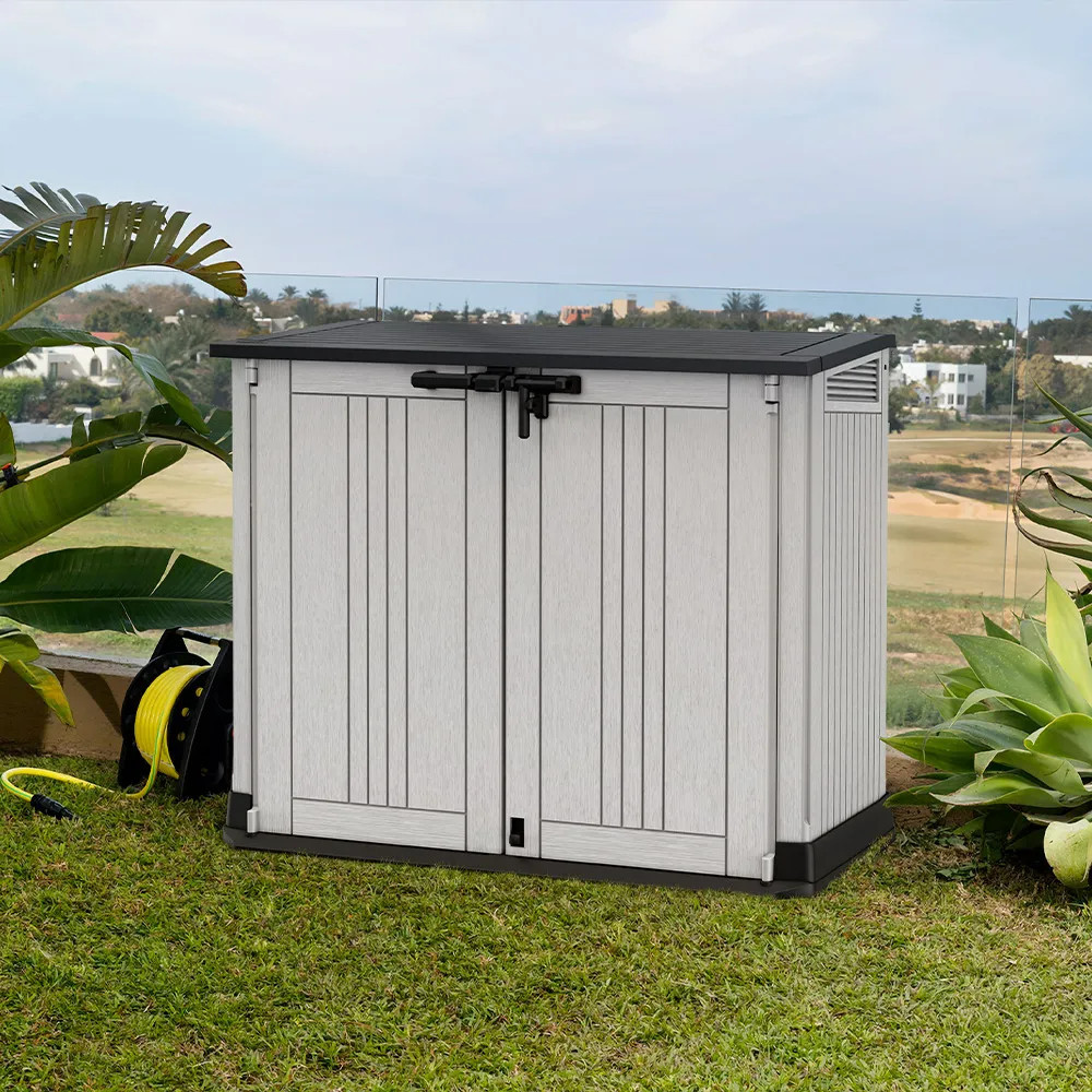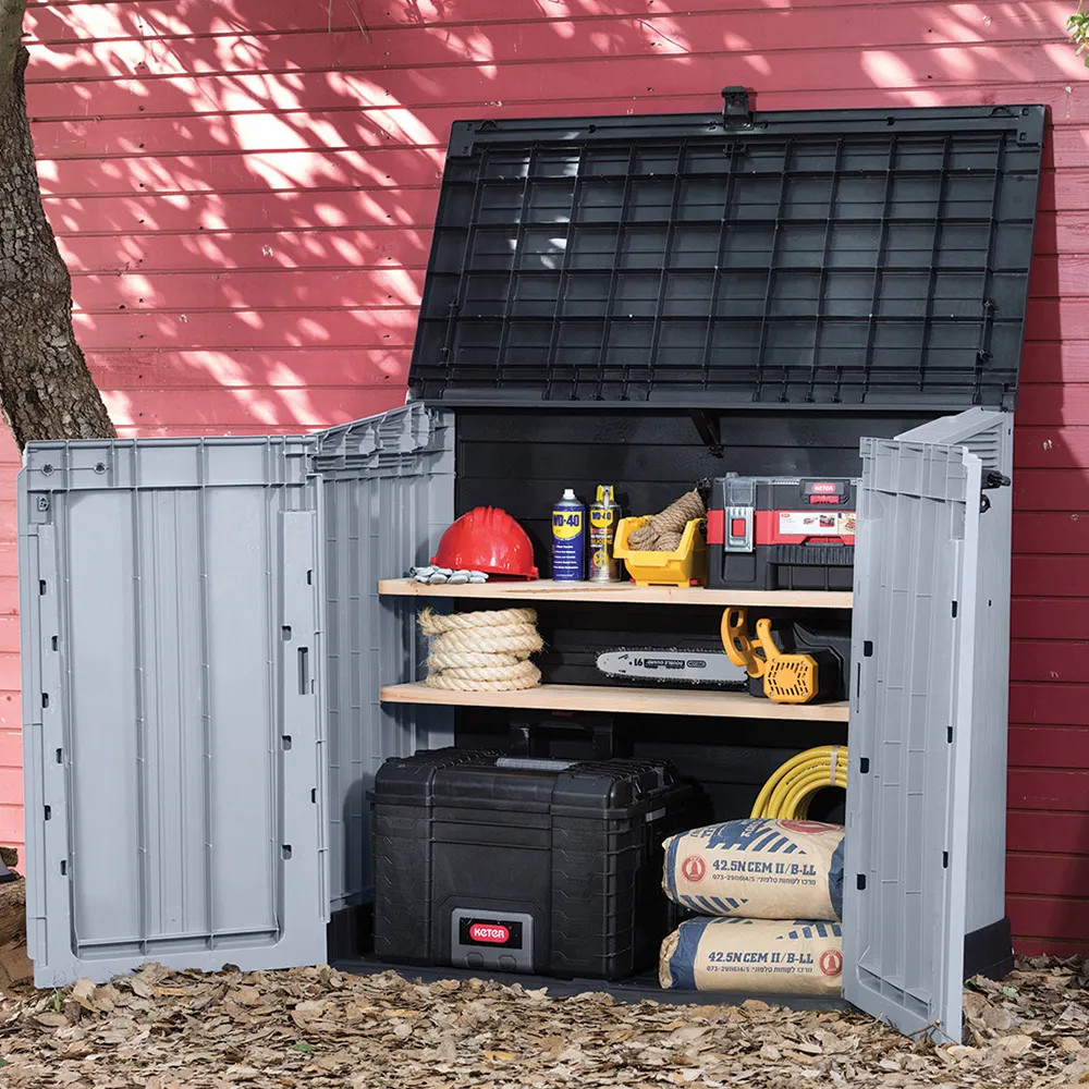 Recomandăm unitatea de depozitare din plastic pentru grădină oricui dorește să își mențină grădina sau terasa ordonată. Acest spațiu de depozitare nu este doar practic, ci și estetic. Se potrivește tuturor tipurilor de curți și terase. Poate fi folosit pentru unelte de grădină, dar și pentru jucării și orice altceva de care ai putea avea nevoie în grădină.