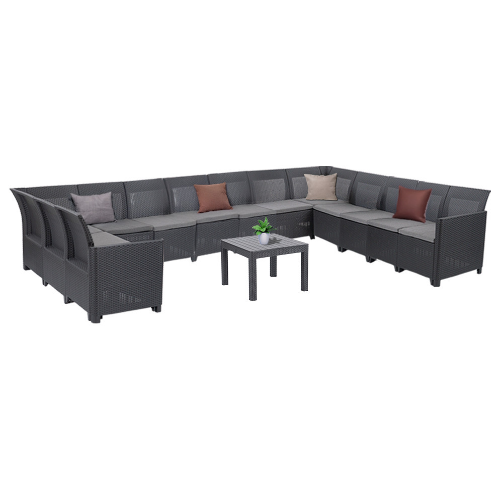 Pentru cine recomandăm canapeaua de colț Keter Claire XVIII cu 13 locuri și masă Orlando?