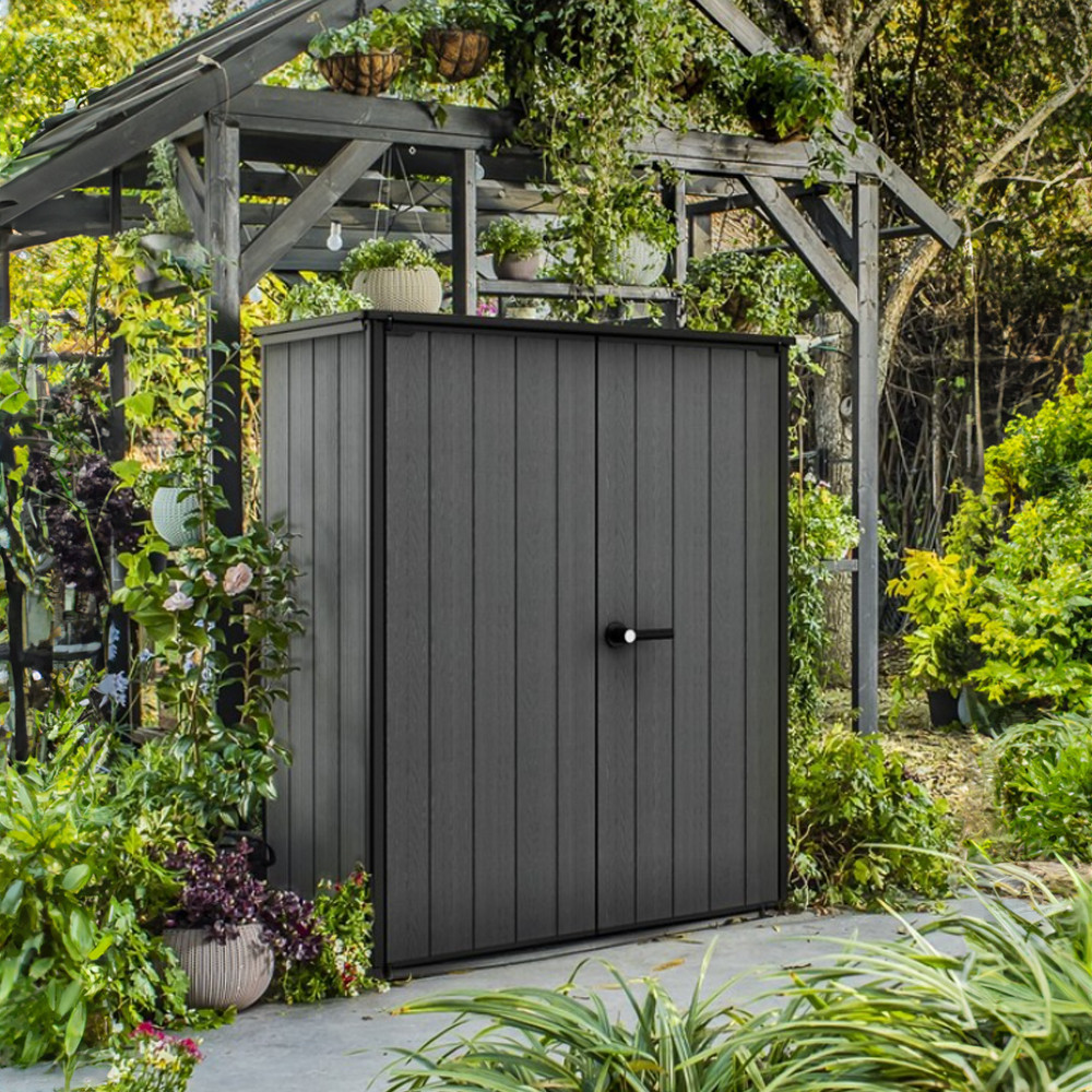 Unitatea de depozitare pentru grădină Cortina Alto este echipată cu două rafturi , perfecte pentru depozitarea uneltelor de grădină mai mici, a furtunurilor sau a mănușilor de grădinărit într-un mod ordonat și clar.