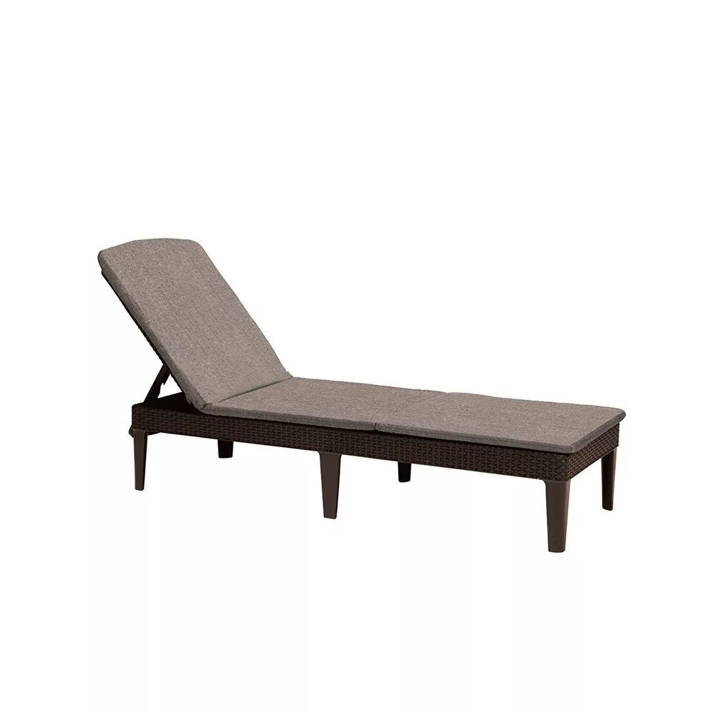 Șezlong funcțional Jaipur, cu un design al suprafeței care amintește de ratanul natural. Datorită structurii sale bine gândite, șezlongul poate fi pliat la dimensiunea unui bagaj mic și practic. Spătarul reglabil în 4 poziții sporește confortul. Se poate curăța cu o cârpă moale și apă cu detergent. Este rezistent la condiții meteorologice nefavorabile și la radiațiile UV.