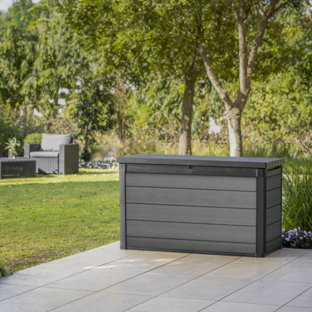 Ladă de grădină din plastic gri Cortina 757L – o nouă adăugire la spațiul de depozitare din grădină