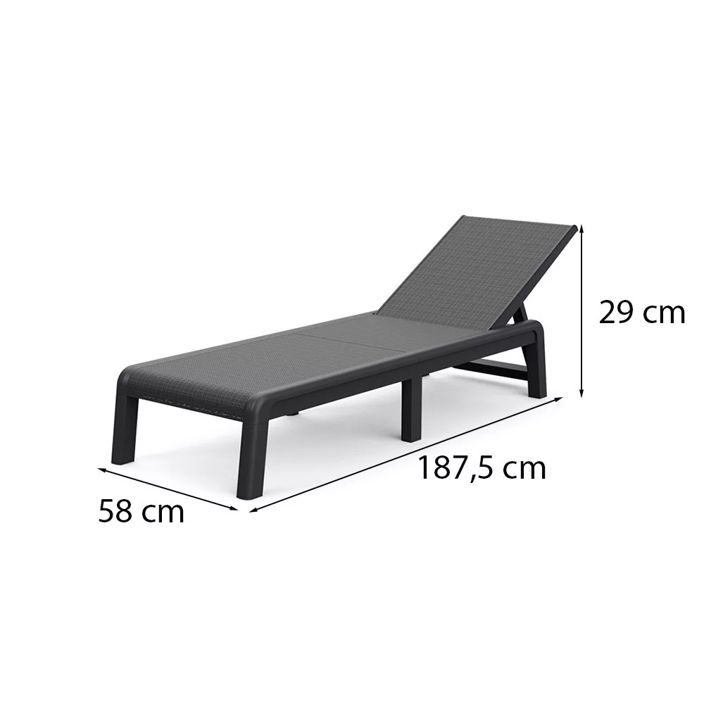 Șezlongul din plastic Keter Mallorca, cu spătarul reglabil în 4 poziții, suprafața de întindere ventilată cu efect de material textil și materialul stabil și rezistent la intemperii, oferă un confort deosebit de utilizat. Fie că este vorba de o terasă, un balcon, o mică zonă de odihnă la capătul grădinii sau o relaxare lângă piscină, șezlongul din plastic Mallorca oferă o relaxare confortabilă și elegantă.