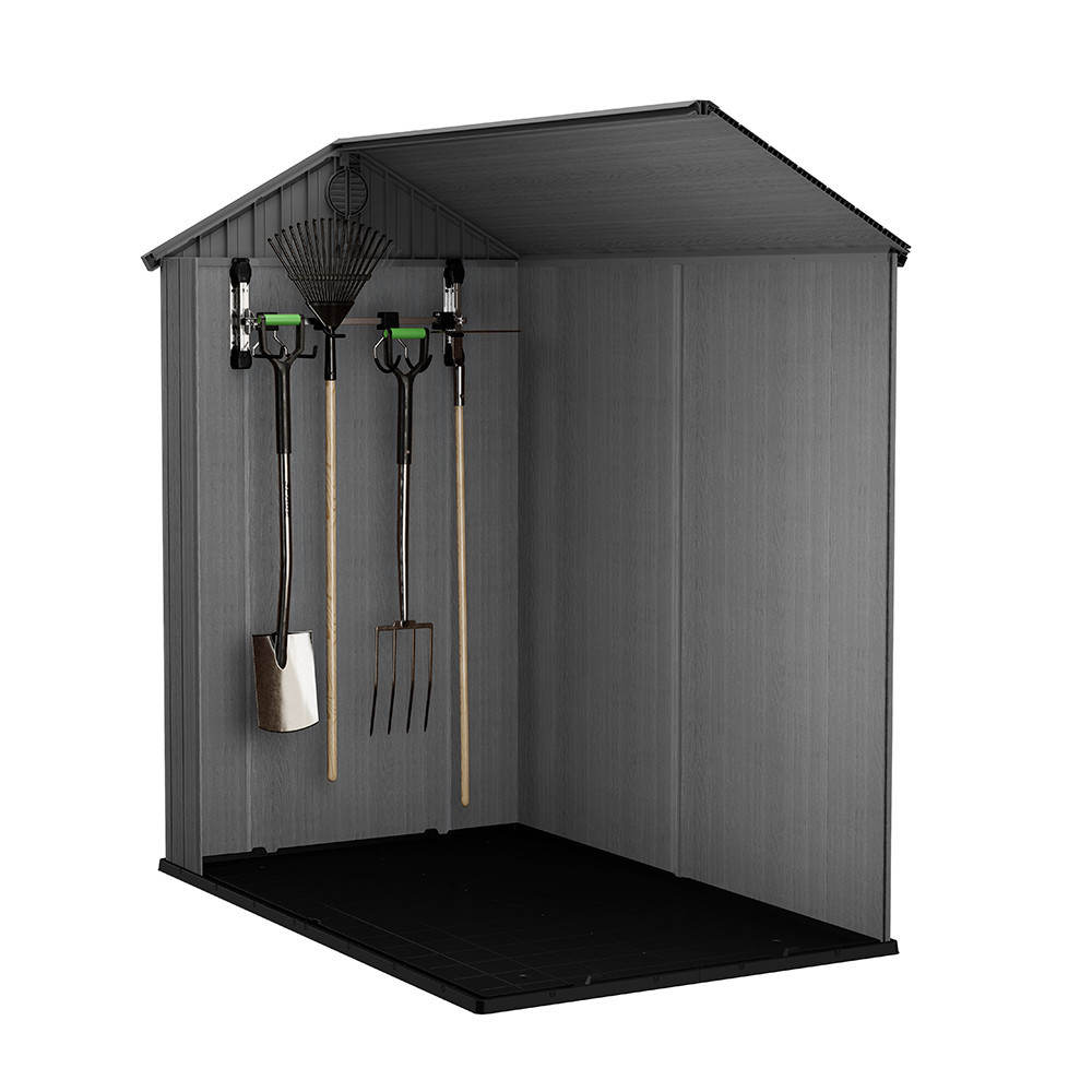 În spatele suportului de perete Keter se află inginerie de calitate industrială și utilizarea de materiale durabile. Învelișul cauciucat de pe cârligele reglabile nu numai că protejează uneltele, dar asigură și o prindere antiderapantă.