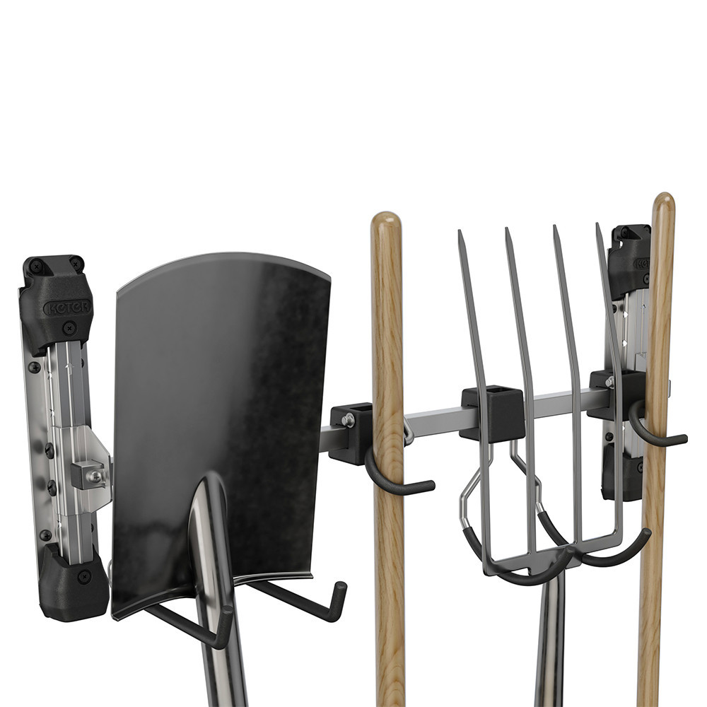 Datorită cârligelor glisante cu blocare a poziției, fiecare unealtă este plasată exact acolo unde este cel mai practic. De asemenea, puteți așeza o lopată, un furtun sau alte unelte de grădinărit pe el - un sistem complet personalizabil!