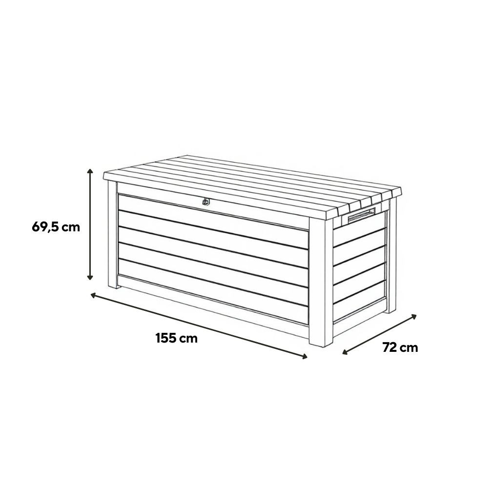 Recomandată pentru oricine caută o ladă de grădină din plastic de 630 litri pentru depozitarea organizată a pernelor, păturilor, uneltelor de grădină sau accesoriilor pentru piscină. Ideal pentru terase mai mari, grădini familiale sau spații în aer liber unde un aspect ordonat și o capacitate mare de depozitare sunt importante.