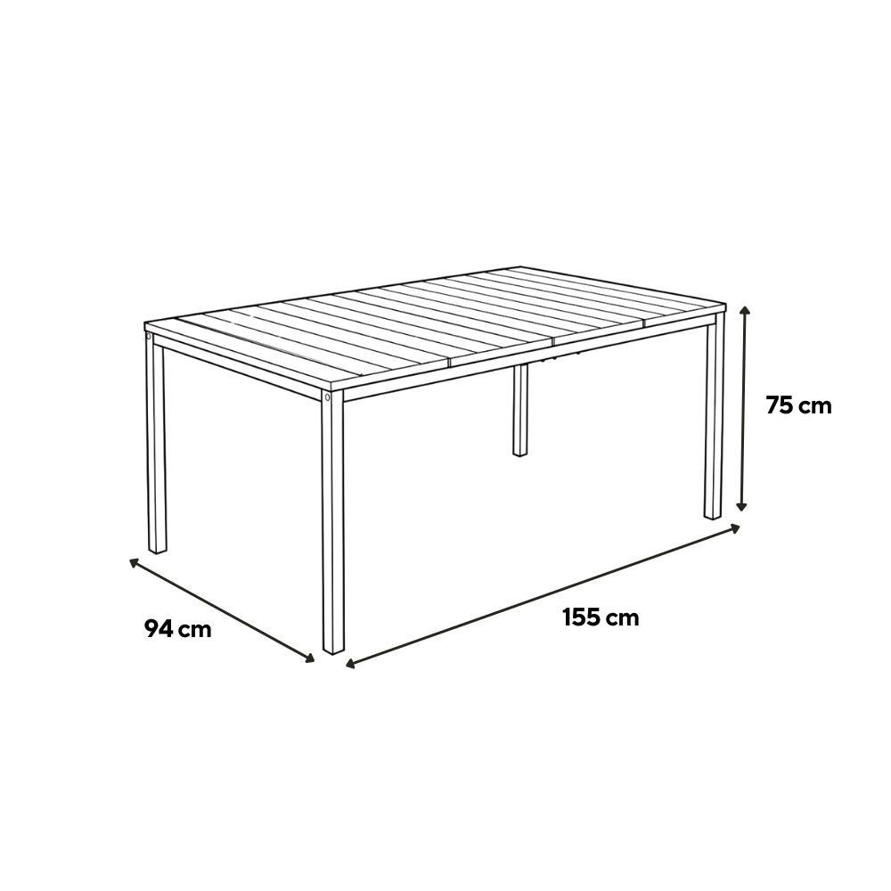 A Porto Nova 160 kerti asztal modern kialakításával és természetes fa hatású felületével stílusos megjelenést biztosít a kertben vagy a teraszon. Ideális választás családi étkezésekhez és baráti összejövetelekhez.