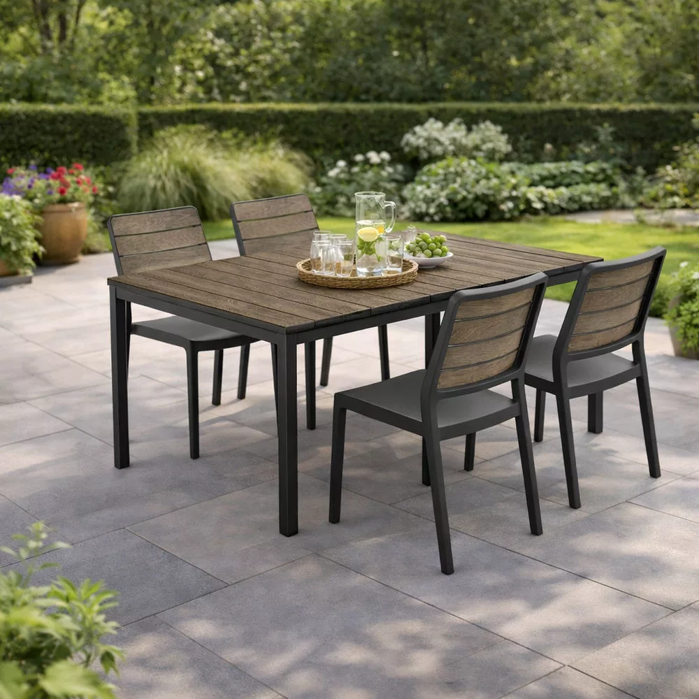Porto Nova 160 műanyag kerti asztal dió-grafit