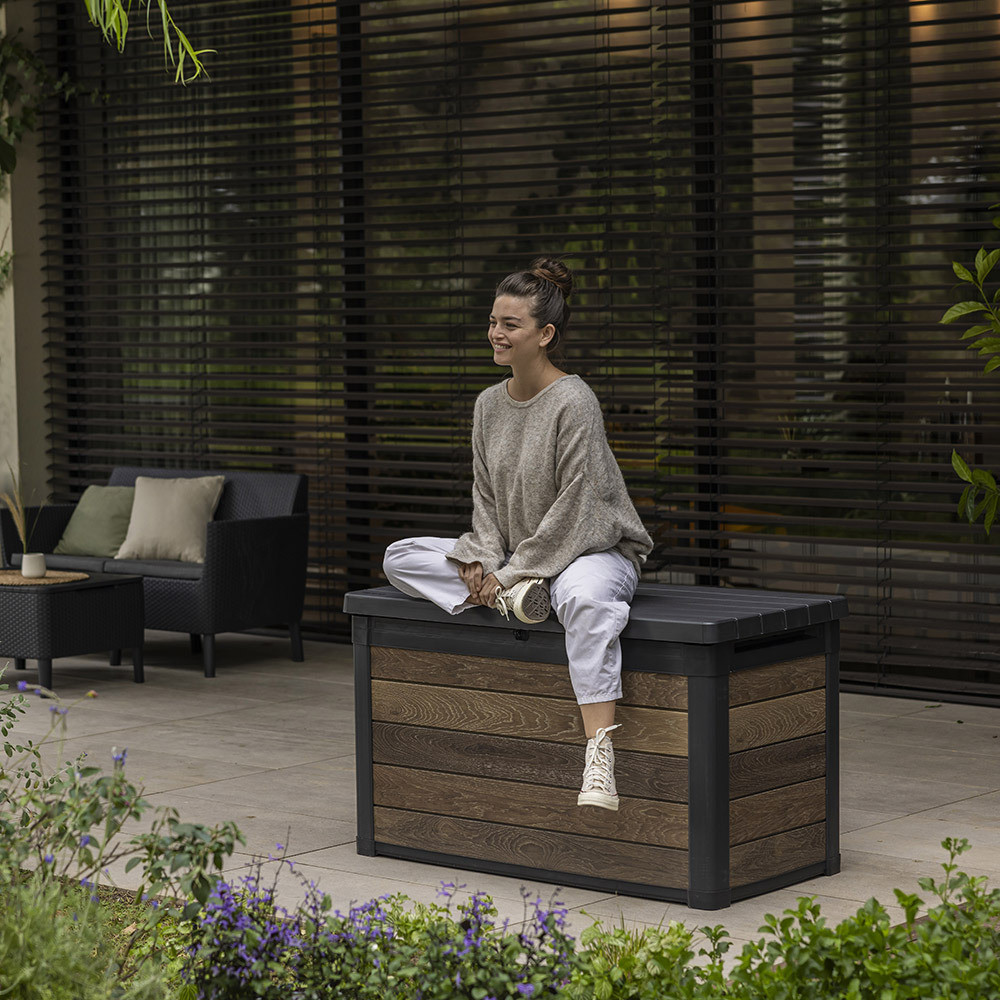 Cine este Lada de grădină din plastic Decocoat 380 L nuc