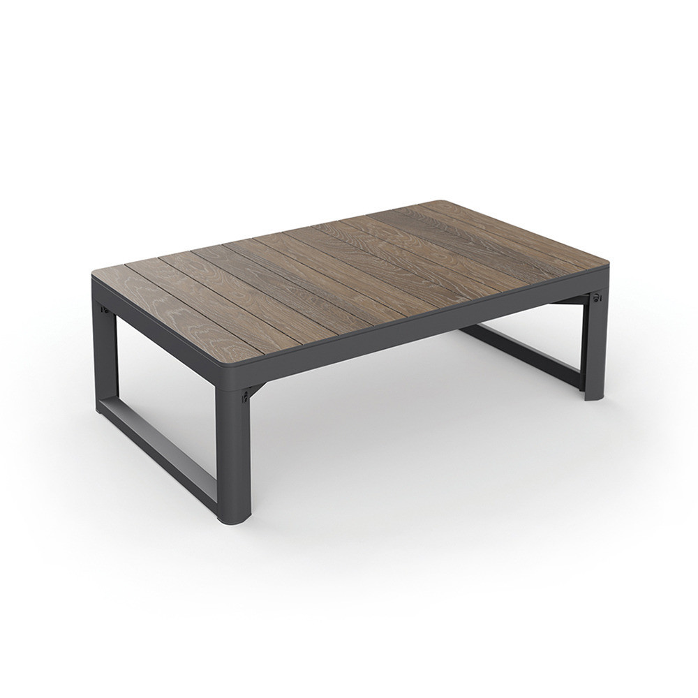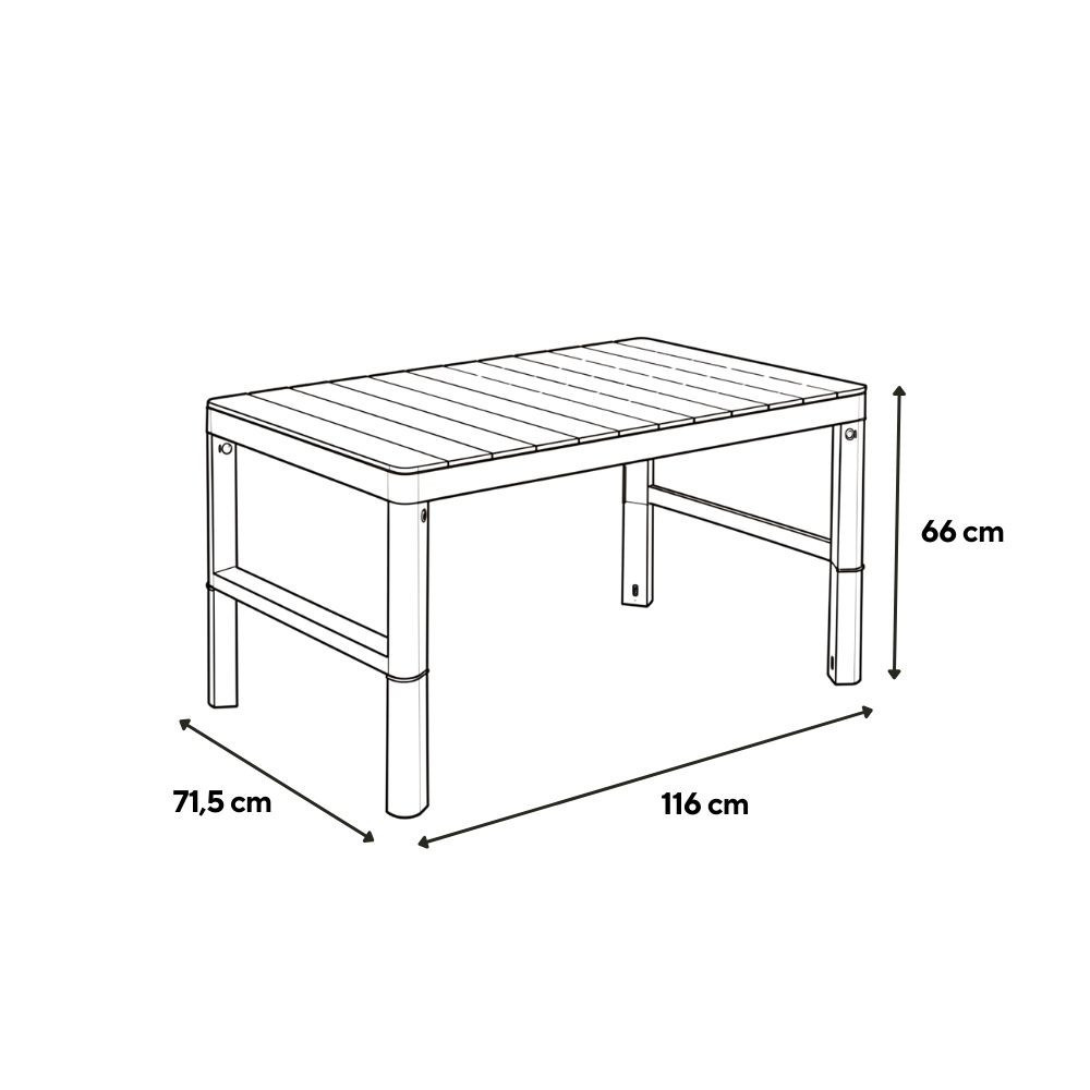 A DecoCoat technológiának köszönhetően az asztal természetes fa hatású felületet kapott, amely elegáns megjelenést biztosít a kertben vagy a teraszon. A felület ellenáll a karcolásoknak és a mindennapi használatból eredő igénybevételnek.