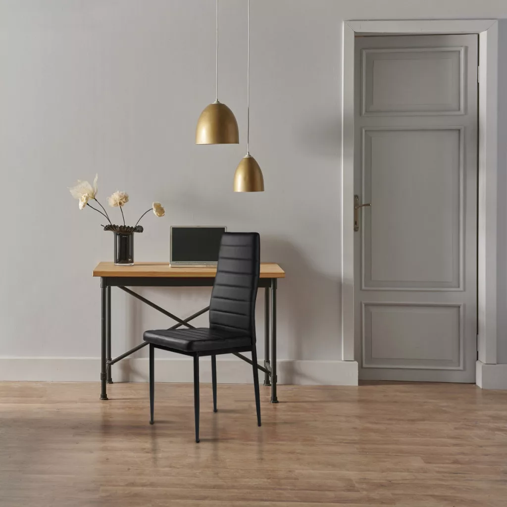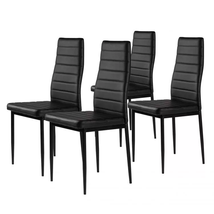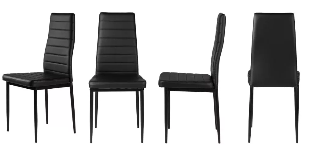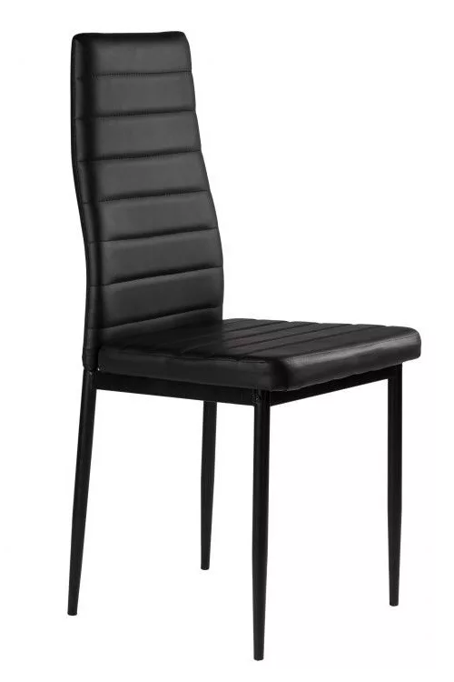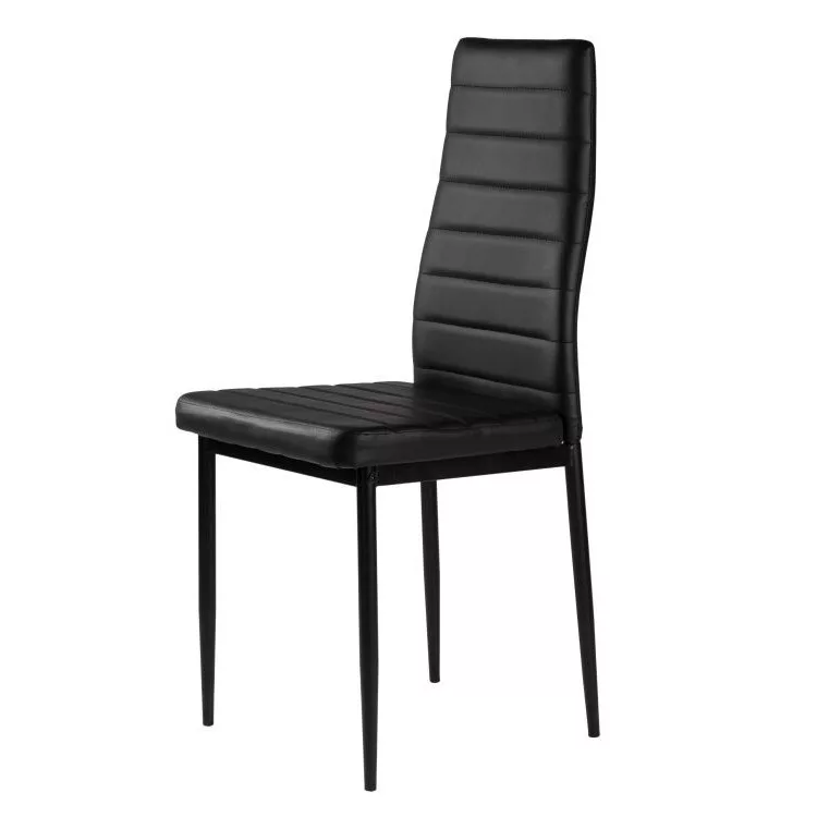 Aceste scaune vor completa perfect masa dvs. din sufragerie sau bucătărie. Tapițeria moale din piele ecologică neagră și picioarele simple negre fac o combinație interesantă, asigurând că scaunele se vor potrivi în orice tip de interior, oferindu-le un caracter unic.