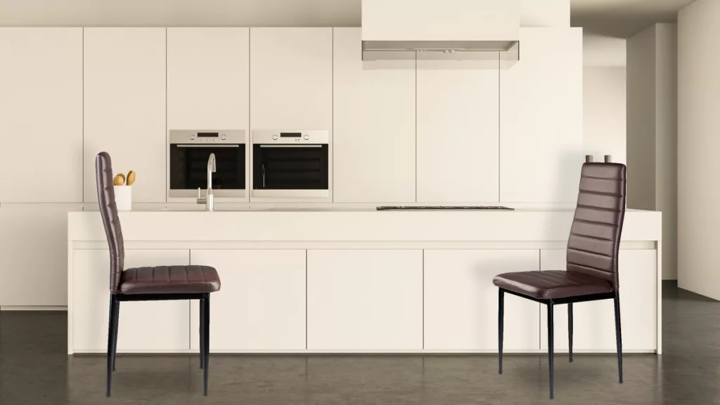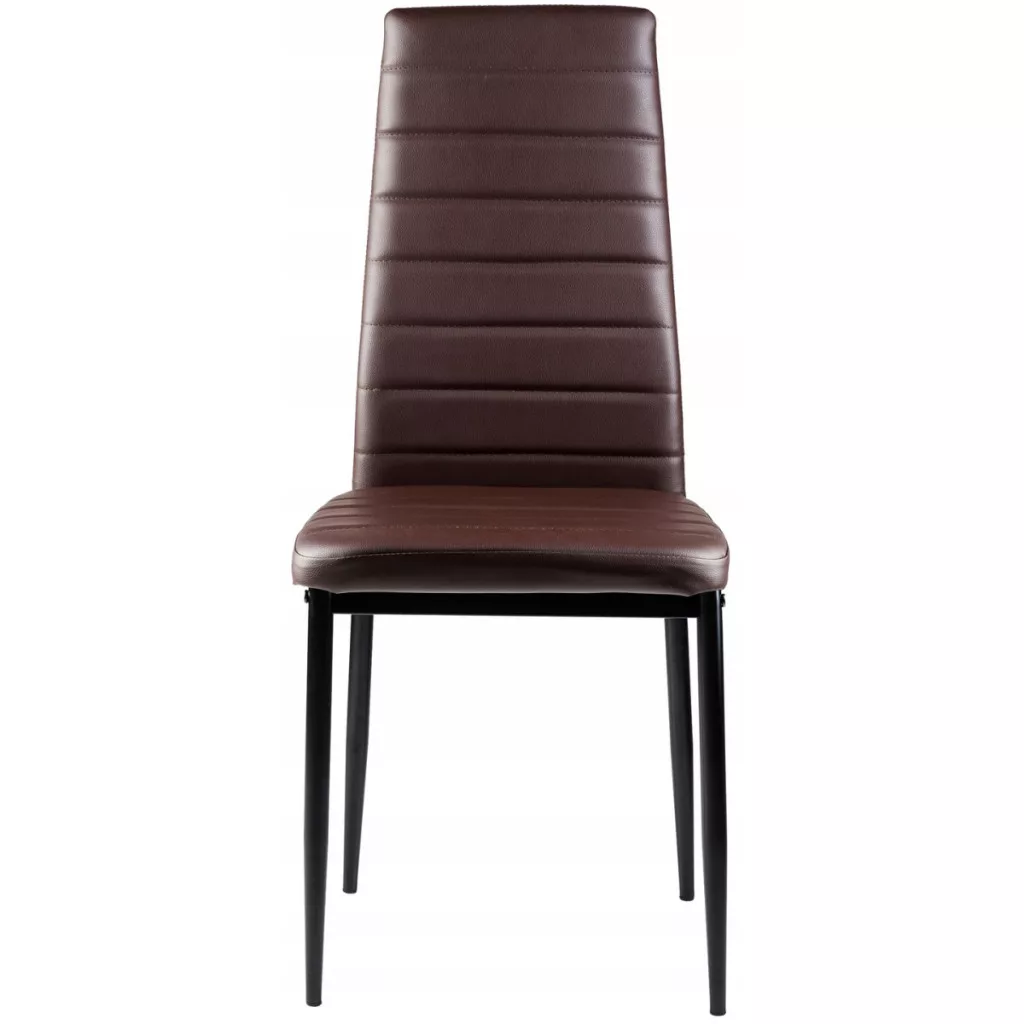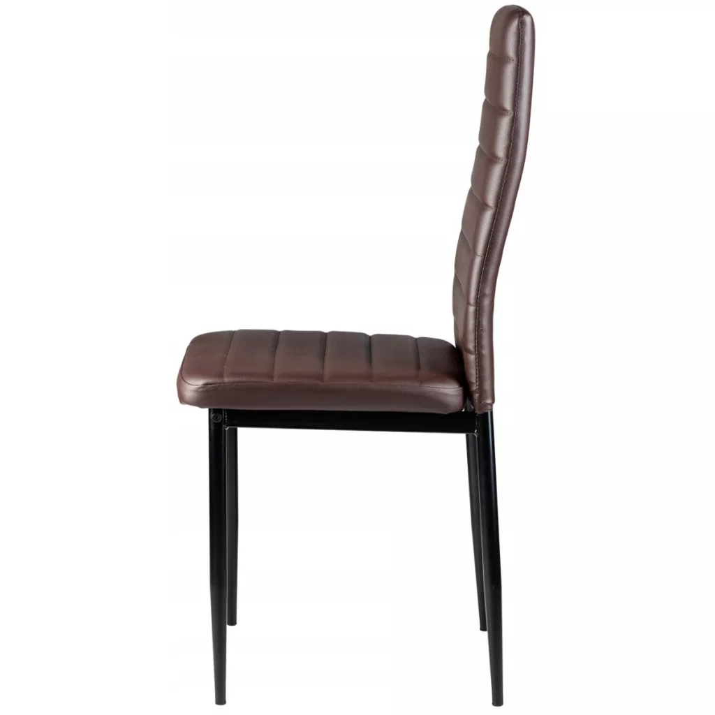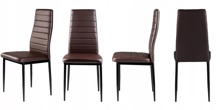Aceste scaune vor completa perfect masa de dining din locuința dvs. Tapițeria maro din piele ecologică moale combinată cu picioarele simple negre le conferă un aspect atrăgător care se va integra bine în orice tip de interior, oferindu-i un caracter unic.