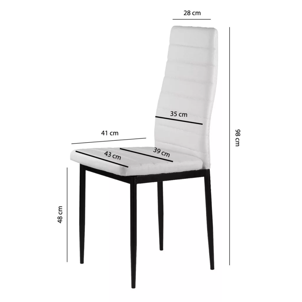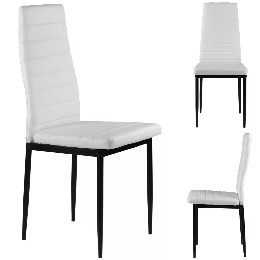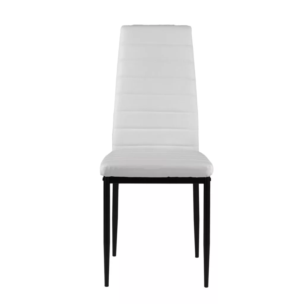 Aceste scaune vor completa perfect masa de mese din bucătăria sau sufrageria dvs. Tapițeria albă din piele ecologică moale și picioarele negre, curate, creează un contrast elegant, făcând din aceste scaune un accesoriu excelent pentru orice interior, conferindu-le un caracter unic.