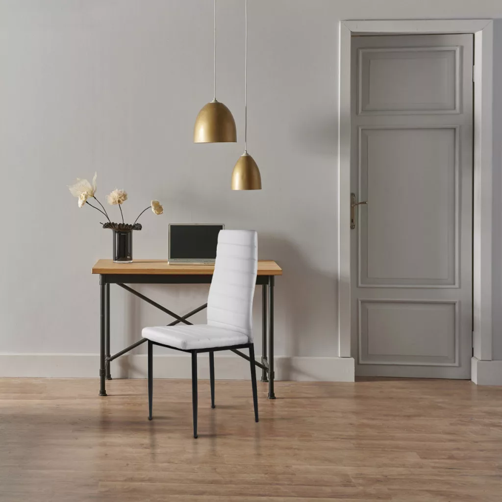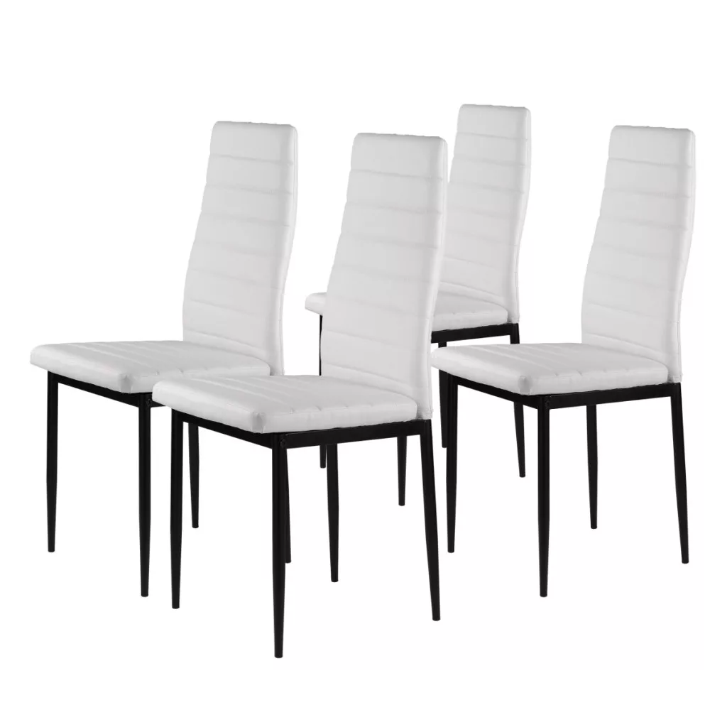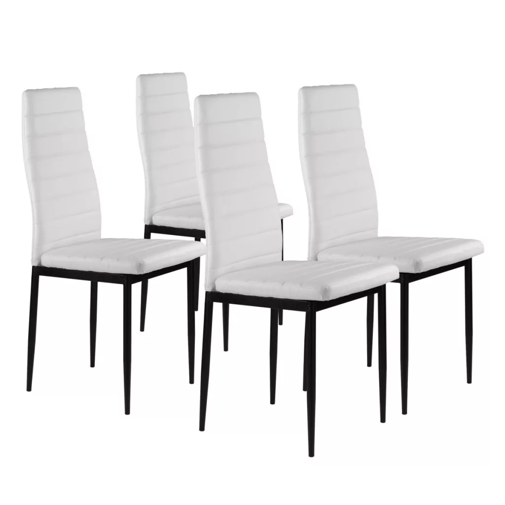 Aceste scaune vor completa perfect masa de mese din bucătăria sau sufrageria dvs. Tapițeria albă din piele ecologică moale și picioarele negre, curate, creează un contrast elegant, făcând din aceste scaune un accesoriu excelent pentru orice interior, conferindu-le un caracter unic.