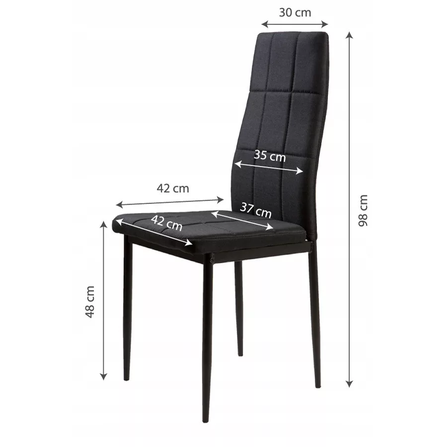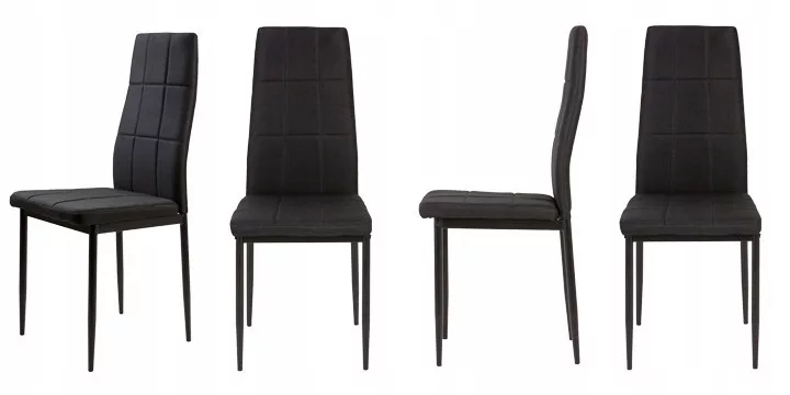 Aceste scaune vor completa perfect masa dvs. din sufragerie sau bucătărie. Tapițeria matlasată neagră din țesătură moale la atingere se va potrivi în orice interior și va adăuga eleganță camerei.