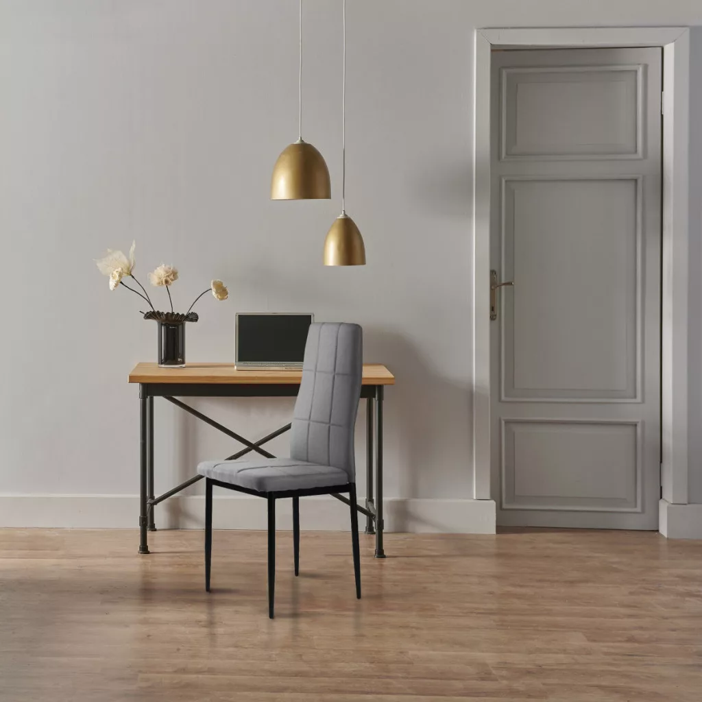 Aceste scaune vor completa perfect masa dvs. din sufragerie sau bucătărie. Tapițerie matlasată gri într-o țesătură moale la atingere care se integrează perfect în orice interior și adaugă un farmec unic.