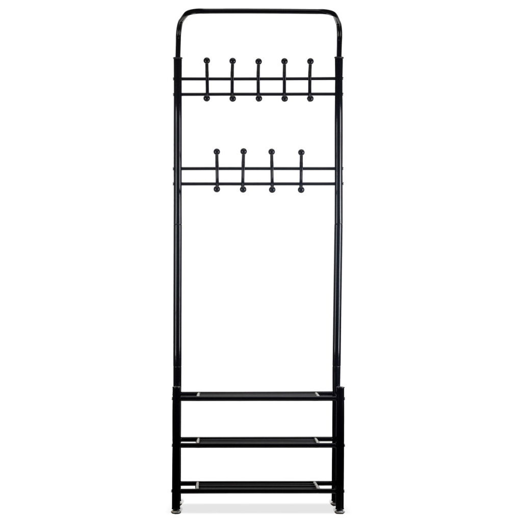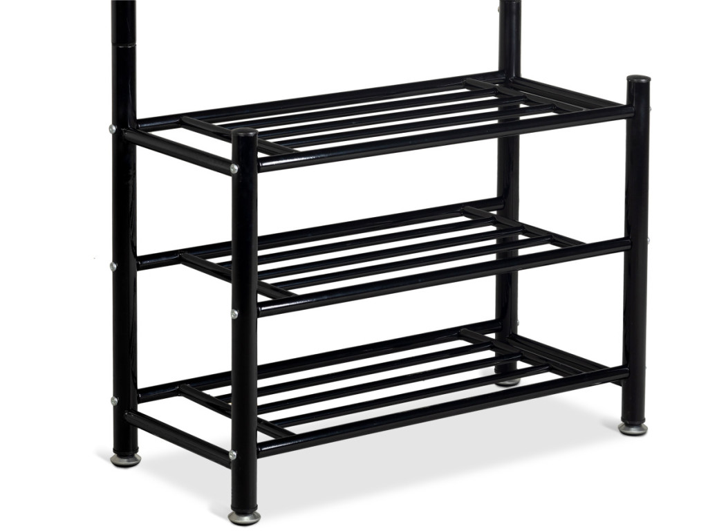 Partea inferioară a raftului are trei rafturi funcționale pentru a depozita articole mici de îmbrăcăminte, genți și chiar pantofi.
