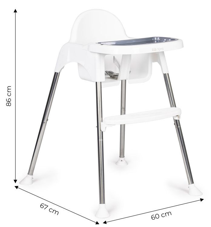 Marginile corect ridicate ale tăvii asigură că nimic nu se varsă pe podea. În plus, tava are un loc separat pentru un pahar sau o sticlă. Scaunul are o structură robustă și ușoară care permite mutarea sa cu ușurință. Picioarele scaunului au picioare din cauciuc pentru a preveni mișcarea scaunului și, de asemenea, pentru a proteja podeaua de zgârieturi.