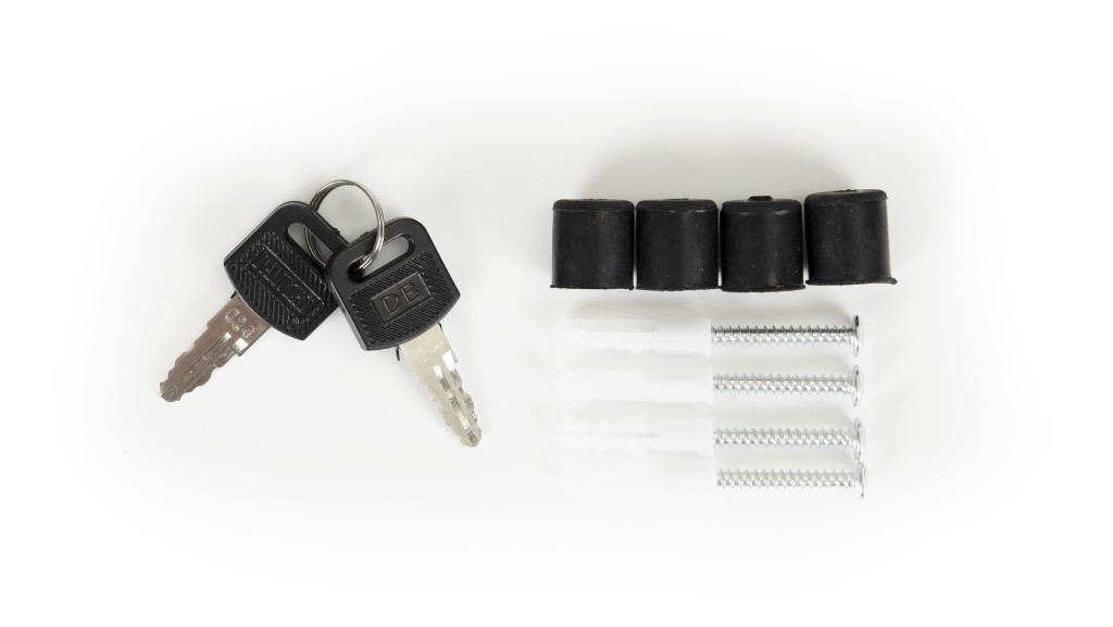 Împreună cu cutia, veți primi un set de asamblare - 4 pini și distanțiere, astfel încât să puteți începe asamblarea cutiei imediat după despachetare. Setul include două chei pentru deschiderea cutiei.