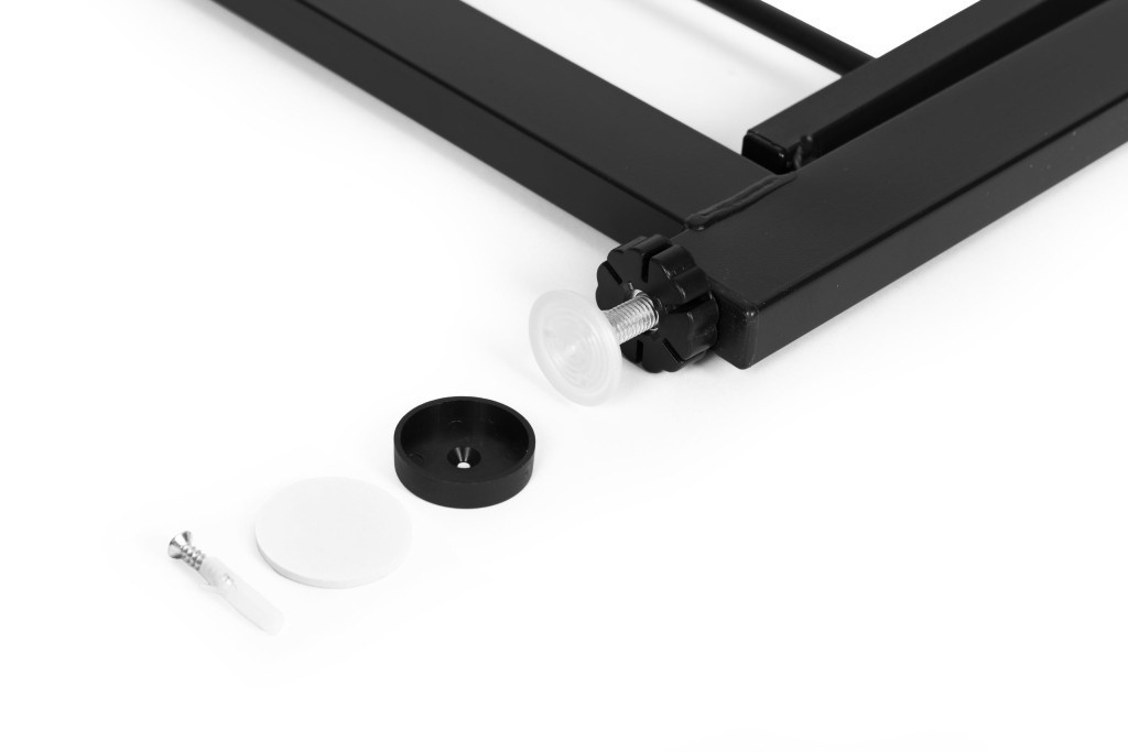 Dacă se preferă fixarea permanentă, kitul include plăcuțe preformate cu deschideri mici. Prin înșurubarea în perete (șuruburi incluse), puteți fixa în siguranță poarta, lăsând intact sistemul de presiune reglabil.