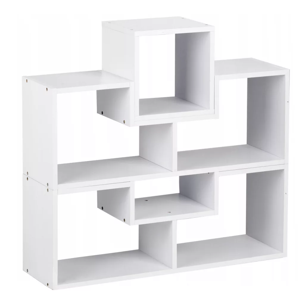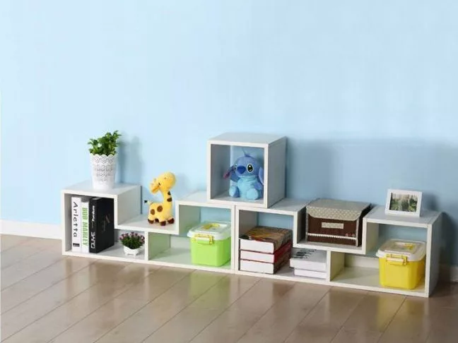 Designerii s-au asigurat că există loc pentru toate, astfel că au prevăzut rafturile cu compartimente care vă permit să organizați cărți, decorațiuni sau pantofi.