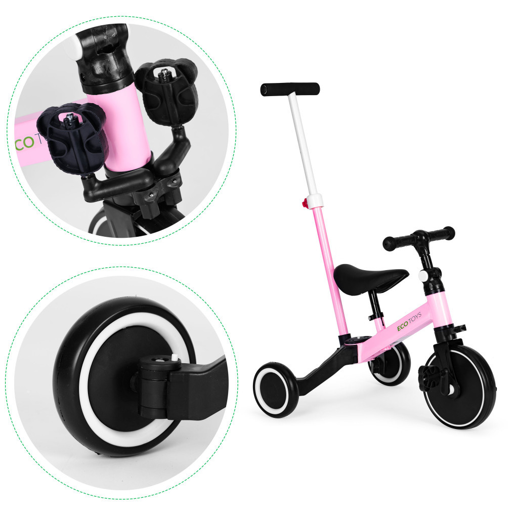 Posibilitatea de a transforma o bicicletă convențională cu pedale într-o bicicletă cu pedale înseamnă că copilul dvs. poate începe să învețe să conducă acest tip de bicicletă în siguranță .Șaua moale și mânerele antiderapante oferă ore întregi de distracție confortabilă. Roțile bicicletei sunt fabricate din >EVA, care sunt rezistente la înțepături, astfel încât pot fi folosite acasă și la plimbări.