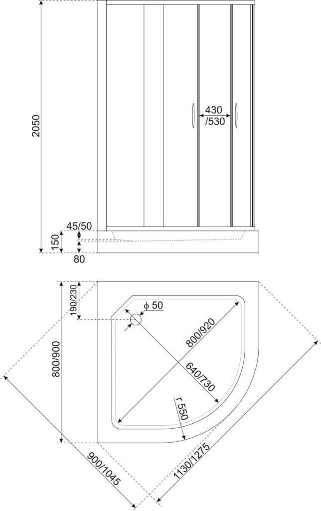 Specificații tehnice ale căzii de duș de 90 × 90 cm: