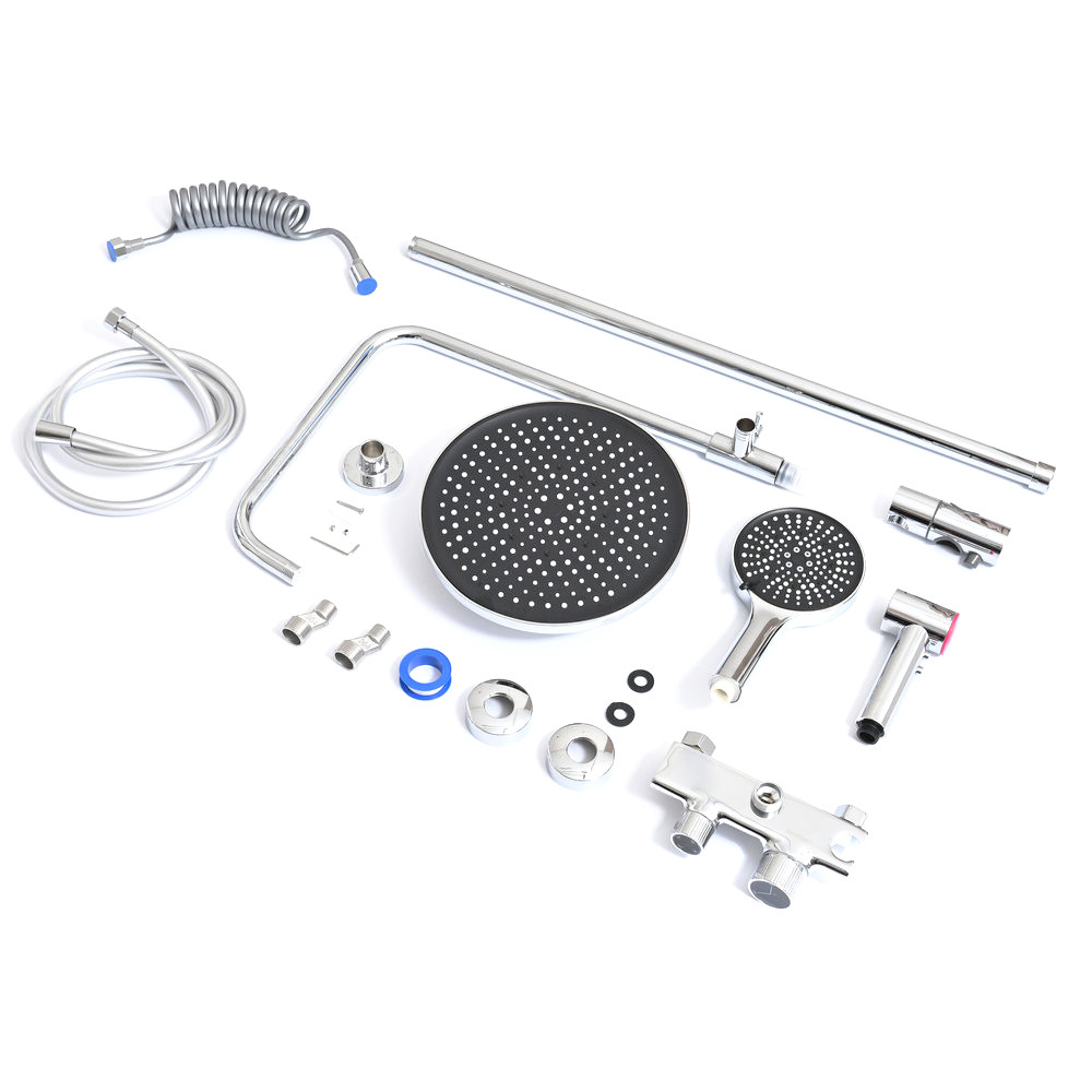 Un set de duș tradițional constă de obicei dintr-un duș de mână, un furtun de duș, un suport pentru capul de duș, o coloană de duș și un deviator de duș. Robinetul este de obicei inclus, dar poate fi necesar să fie achiziționat separat. Robinetul poate fi cu o singură manetă sau cu două manete. Unele seturi de duș pot fi completate cu un cap de duș tip ploaie, funcție de bideu, gura de scurgere pentru cadă sau chiar un robinet termostatic.