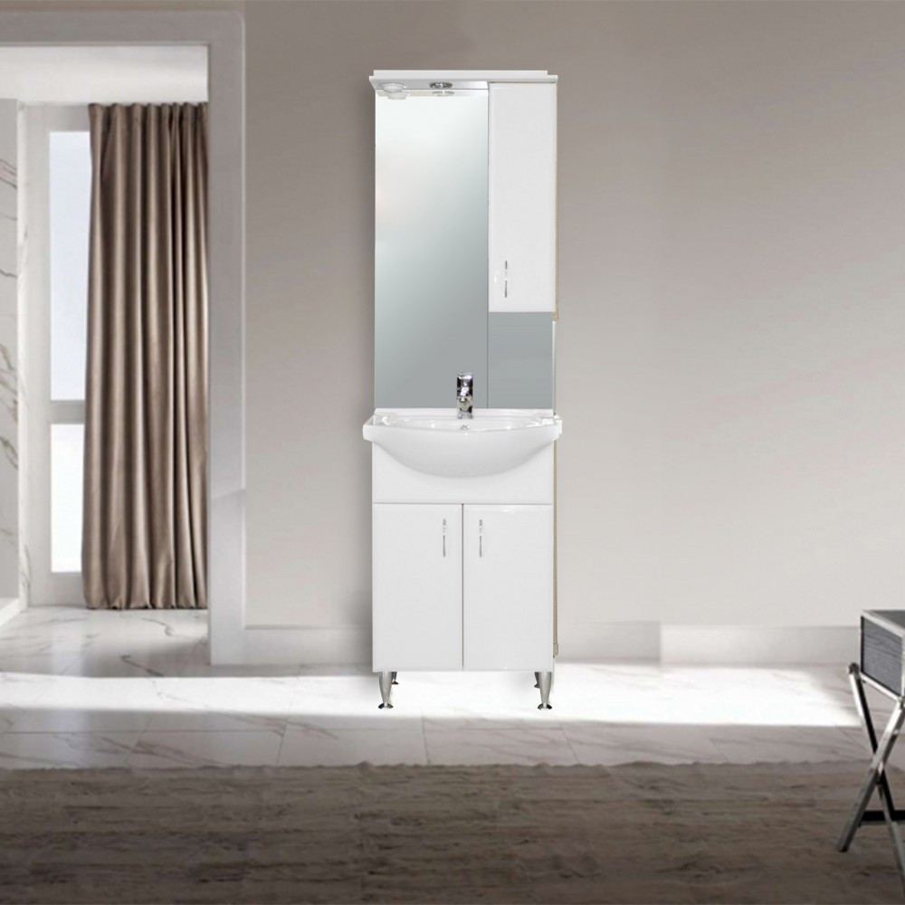 Membru al familiei de mobilier de baie Bianca Plus , de înaltă calitate, produs în țară. Partea din față a mobilierului este, de asemenea, acoperită cu folie MDF vidată , ceea ce o face perfect impermeabilă .