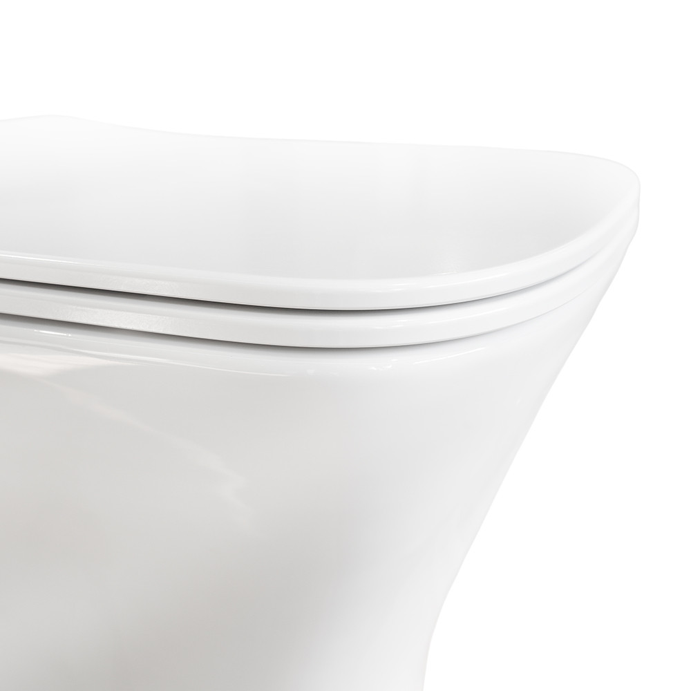 Vasul de toaletă este fabricat din ceramică albă de calitate superioară, care nu este doar plăcută din punct de vedere estetic, ci și extrem de durabilă. Suprafața netedă și densă a ceramicii arse rezistă la zgârieturi, decolorare și depuneri de apă, astfel încât își va păstra aspectul luminos și curat pentru o lungă perioadă de timp. Materialul neporos este o alegere igienică, ușor de curățat, care împiedică murdăria și bacteriile să se lipească.