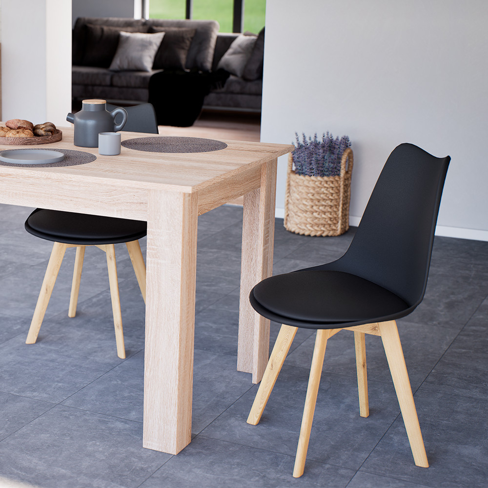 THE Scaun de masă Silla negru Cu liniile sale curate și stilul modern, transformă instantaneu bucătăria sau sufrageria în o atmosferă primitoare și elegantă. Nuanța neagră este atemporală, așa că se poate integra cu ușurință în interioare clasice, scandinave sau chiar moderne. Tonurile sale deschise aduc prospețime spațiului și creează un efect mai spațios.