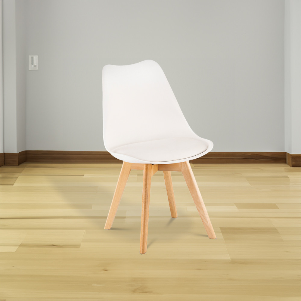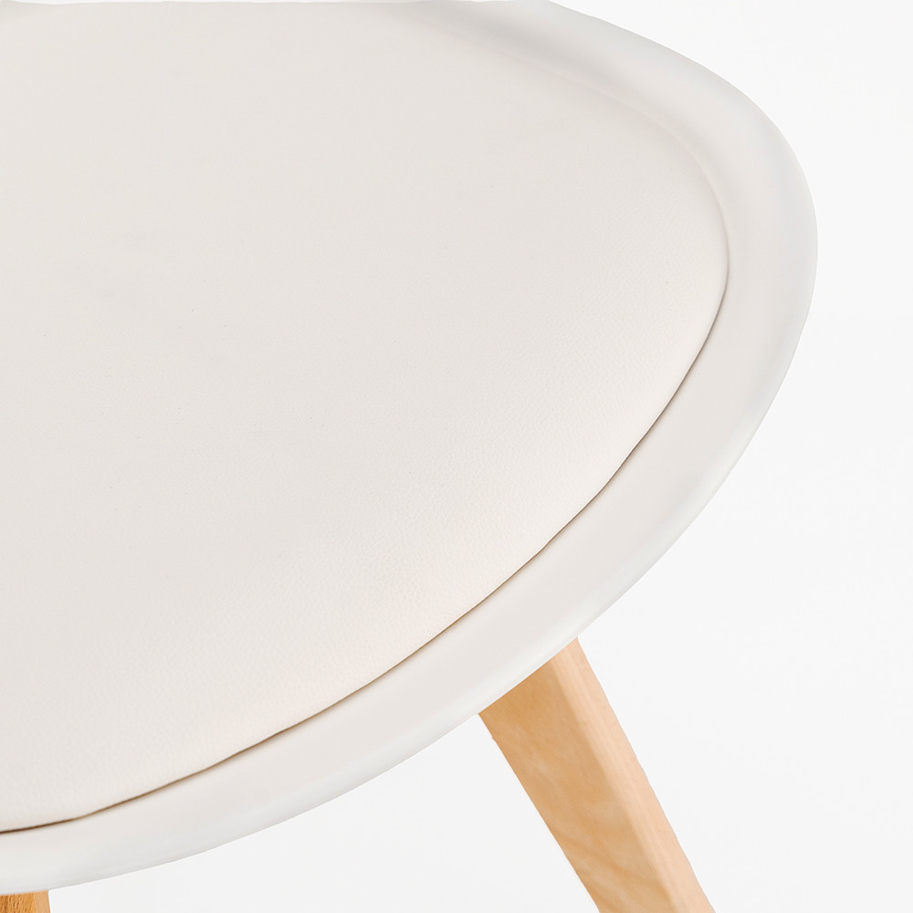 Suprafața de ședere este fabricată din polipropilenă durabilă și ușor de curățat, în timp ce căptușeala moale face ca fiecare experiență de ședere să fie confortabilă. Picioarele din lemn de culoarea fagului nu numai că emană o atmosferă caldă, dar oferă și o bază solidă pentru scaun. Scaunul are o capacitate de încărcare de 120 kg.