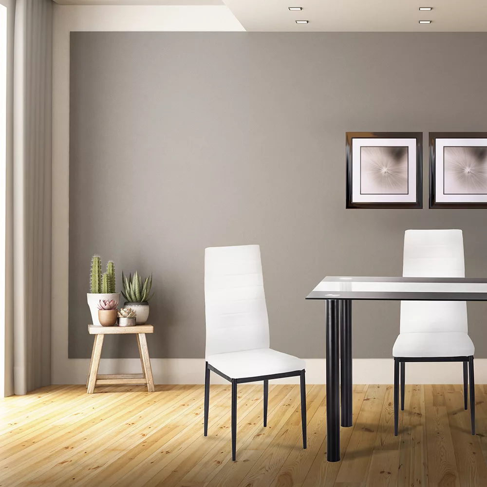 Scaunul de dining Tino NOVA, într-o combinație de culori alb și negru, este o piesă de mobilier elegantă și practică. Fie că este vorba de cine în familie sau de întâlniri cu prietenii, acest scaun asigură atât confort, cât și eleganță. Alege scaunul de sufragerie Tino NOVA pentru a face sufrageria ta și mai confortabilă!