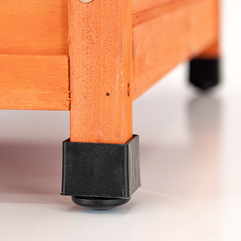 Capacele reglabile din plastic de pe picioarele cuștii pentru câini asigură o fixare stabilă și o protecție optimă împotriva umezelii persistente. Distanța față de sol poate fi ajustată individual, asigurând un efect de ventilație, care protejează perfect animalul de companie de frigul și umezeala solului.