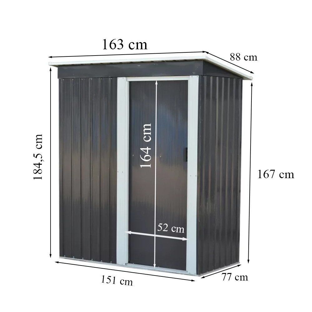 Cutia pentru depozitarea uneltelor de grădină este fabricată din oțel zincat Colorbond cu grosimea de 0,27 mm , ceea ce garantează durabilitate și durată lungă de viață. Structura este ranforsată cu un cadru din oțel galvanizat cu grosimea de 0,6 mm , ceea ce crește stabilitatea și siguranța. Materialul este rezistent la rugină, astfel încât clădirea își păstrează aspectul estetic și atractiv din exterior. Asamblarea căsuței pentru unelte de grădină este simplă și ușor de realizat.