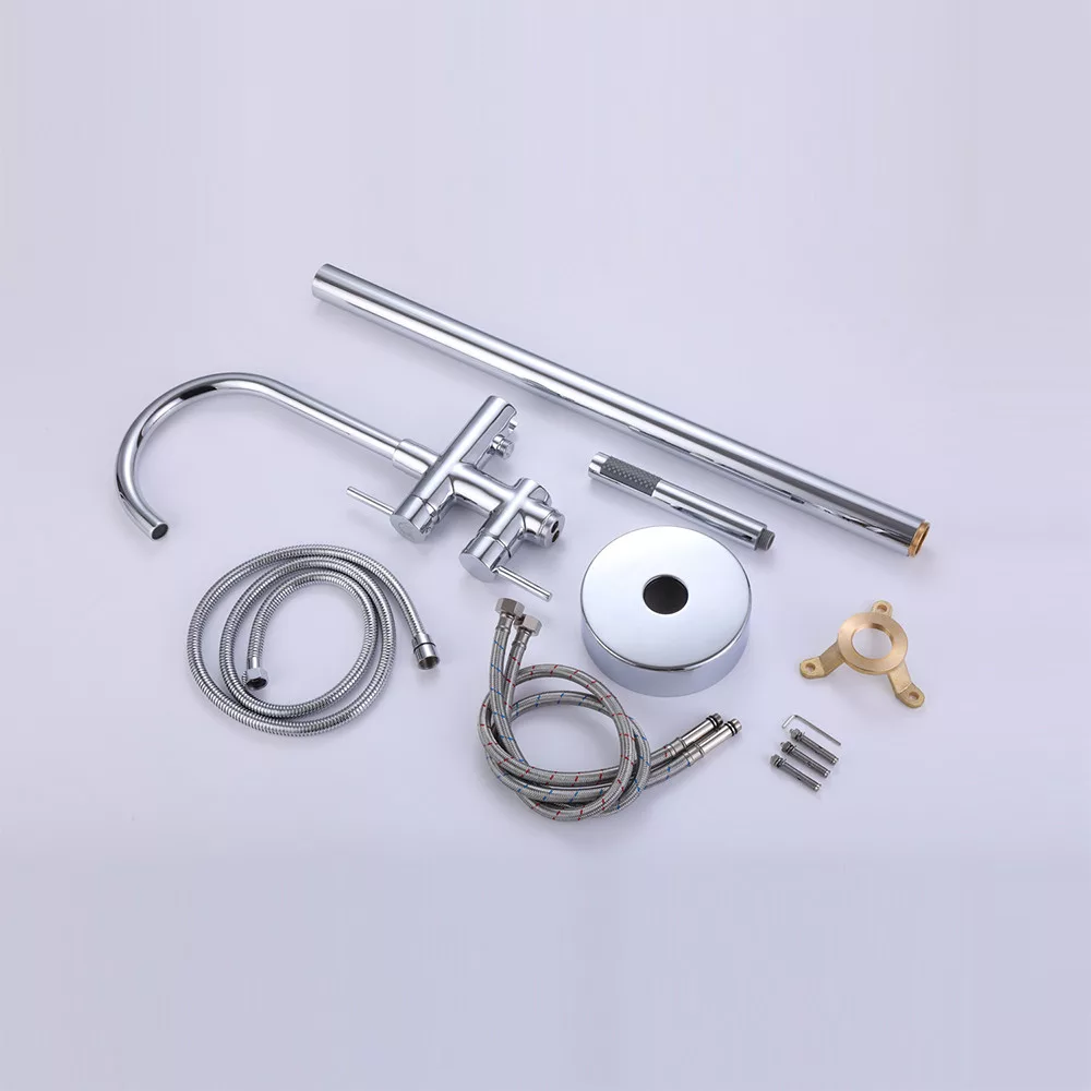 Bateria de baie independentă Tia reprezintă echilibrul perfect între designul modern și eleganța clasică. Liniile sale curate și finisajul cromat strălucitor arată bine în orice baie.