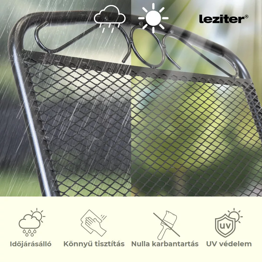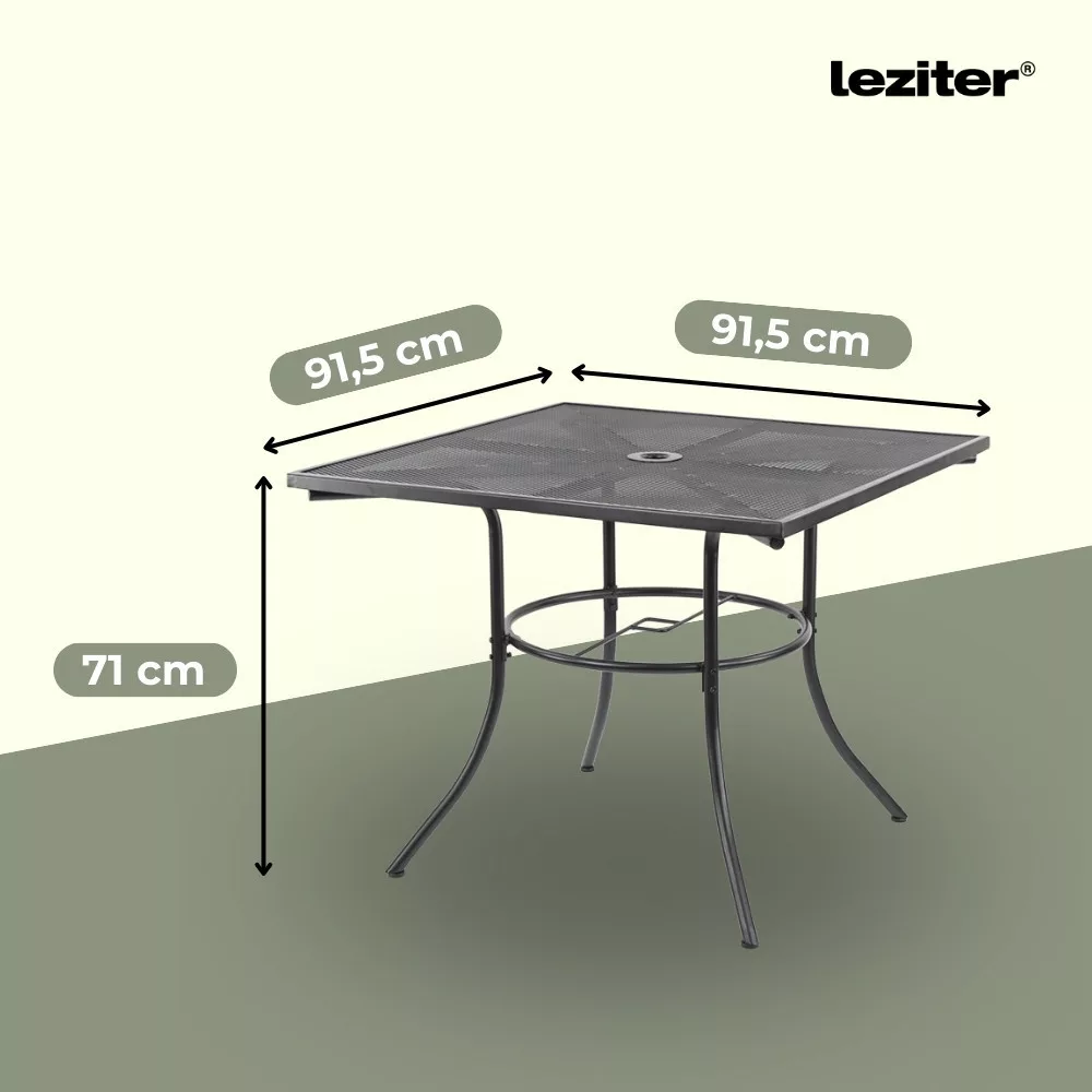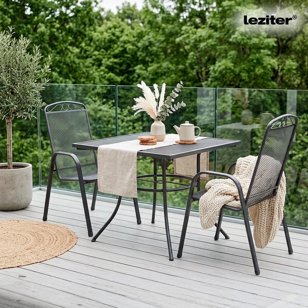 Setul de mobilier de grădină Leziter Mona Balcony în culoarea antracit include o masă de grădină pătrată Melfi și 2 fotolii confortabile Melfi, cu construcția sa robustă din oțel, finisaj rezistent la coroziune și acoperit cu pulbere și design compact, este o alegere ideală pentru un balcon, o terasă mică sau grădină.
