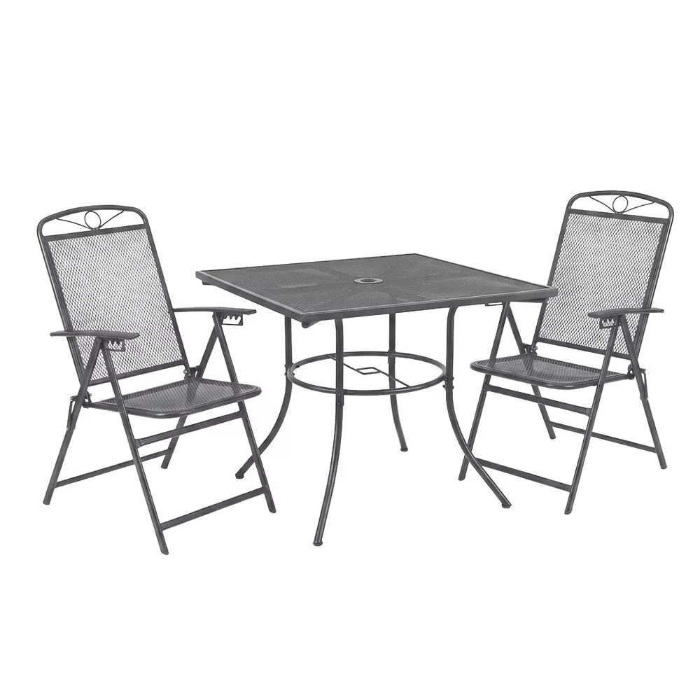 1 Masă de grădină Melfi din plasă metalică2 scaune de grădină pliabile din plasă metalică Alba