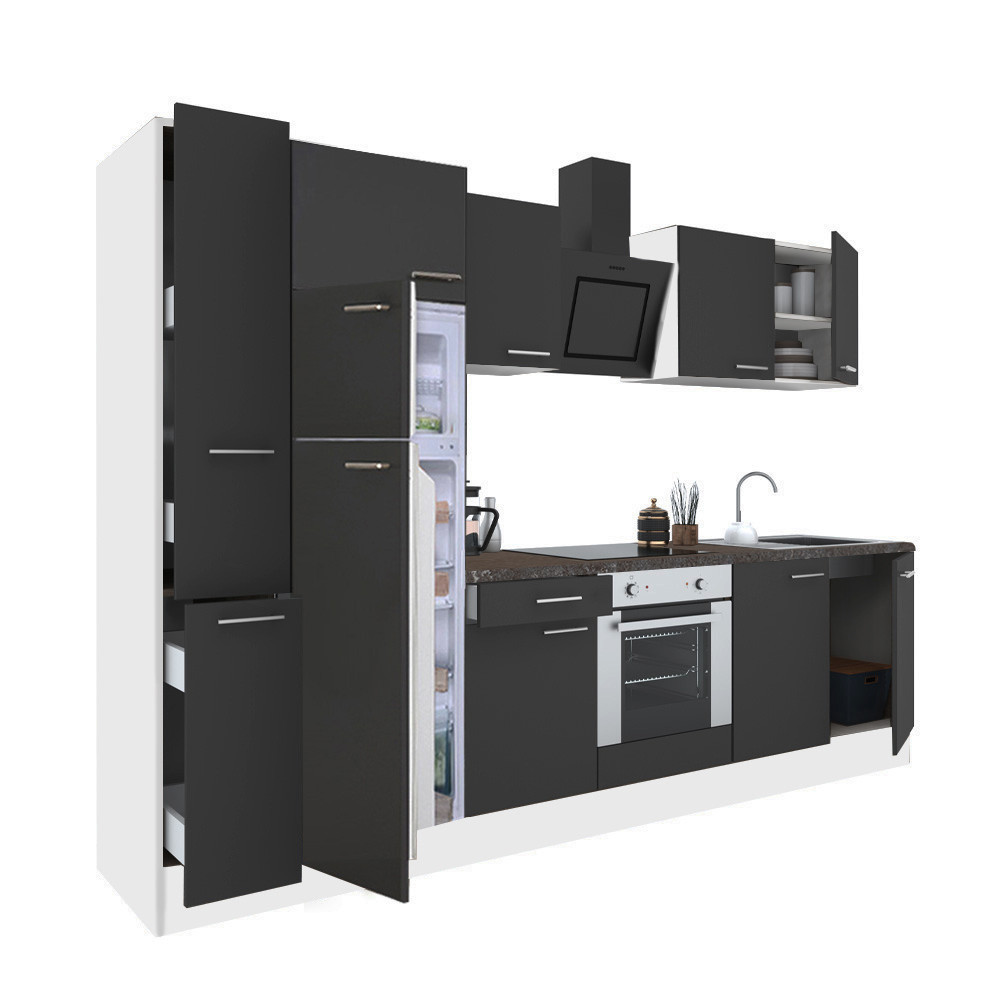 Mobilier de bucătărie modular de înaltă calitate, produs în țară, care va satisface nevoile oricărui client. Corp fabricat din placă de mobilier laminată de 16 mm , de culoare albă. După asamblare, pinii ombilicali și șuruburile de confirmare îl fac suficient de solid. Blatul de lucru este fabricat dintr-o singură piesă peste elemente și are o grosime de 38 mm .