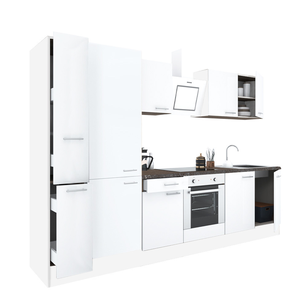 Mobilier de bucătărie modular de înaltă calitate, produs în țară, care va satisface nevoile oricărui client. Corp fabricat din placă de mobilier laminată de 16 mm , de culoare albă. Când este asamblat, pinii ombilicali și șuruburile de confirmare îl fac suficient de solid. Blatul de lucru este fabricat dintr-o singură piesă deasupra elementelor și are o grosime de 38 mm .