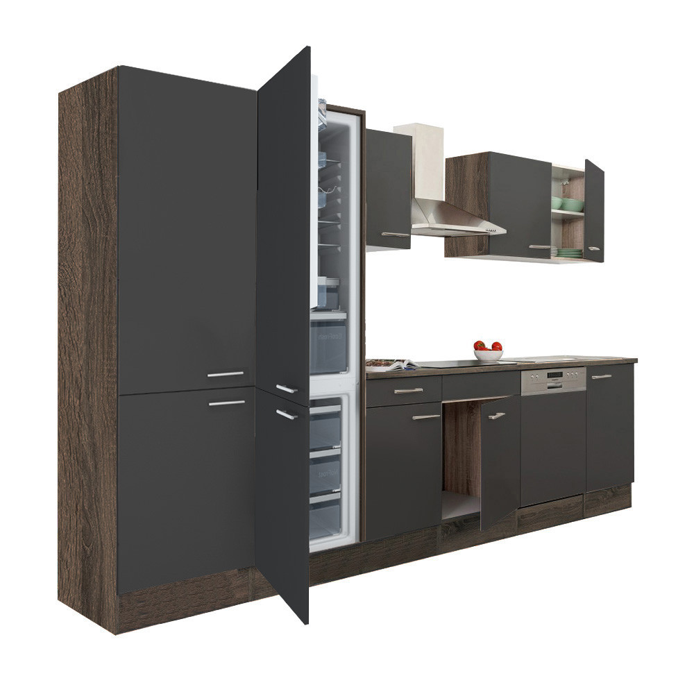 Mobilier de bucătărie modular de înaltă calitate, produs în țară, care va satisface nevoile oricărui client. Corp realizat din placă laminată pentru mobilier de 16 mm , de culoare stejar York. După asamblare, pinii ombilicali și șuruburile de confirmare îl fac suficient de solid. Blatul de lucru este fabricat peste elemente și are o grosime de 28 mm .