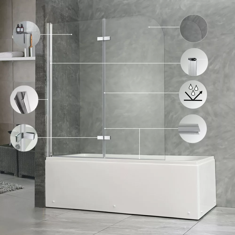 ● Lățime: paravanele de baie fixe și dintr-o singură bucată acoperă 60–80 cm, modelele din două bucăți sau cu uși glisante acoperă aproximativ 100–120 cm, în timp ce soluțiile cu uși glisante duble pot acoperi întreaga lungime a căzii.